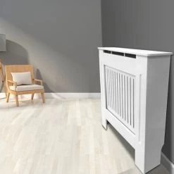Milton Radiator Cover MDF Modern Cabinet Slatted Grill, White, Small
