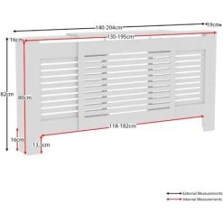 Milton Radiator Cover MDF Modern Cabinet Slatted Grill, White, Adjustable