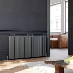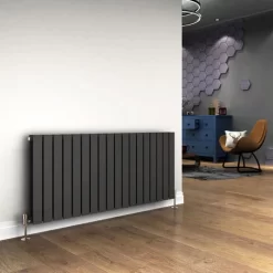 ELEGANT Anthracite Designer Radiator Horizontal Flat Panel Radiator 600x1216mm, Double Flat Panel