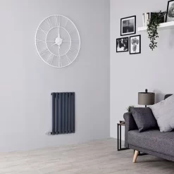 Milano Aruba Electric – Modern Anthracite Horizontal Single Oval Panel Radiator – 635mm X 413mm