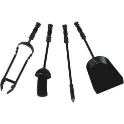 PrimeMatik – Fireplace Companion Tool Set Of 4 Accessories For Fireside Made Of Cast Iron