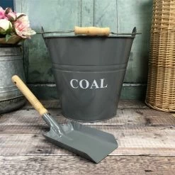 Fireside Kindling Bucket In French Grey With Canvas Log Carrier Bag
