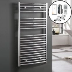 Bray Curved Chrome Dual Fuel Towel Rail With Thermostat, Timer + WiFi Control, 800-500