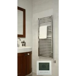 ELEGANT Chrome Designer Flat Panel Heated Towel Rail Radiator 1200 X 400
