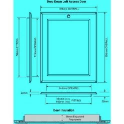 Manthorpe Large Opening Hinged Drop Down Loft Access Door (White) – 562 X 726mm (50mm EPS)