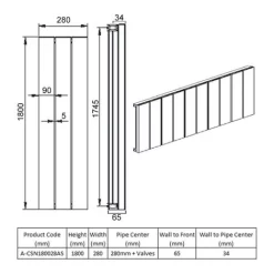 Reina Casina Single Vertical Aluminium Radiator 1800mm H X 280mm W Anthracite