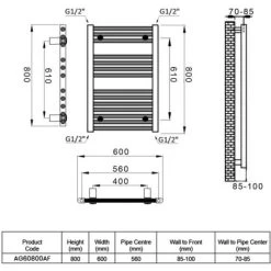 Reina Diva Steel Straight Anthracite Heated Towel Rail 800mm H X 400mm W Central Heating