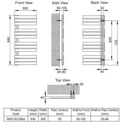 Reina Ricadi Designer Heated Towel Rail 840mm H X 500mm W Polished Stainless Steel
