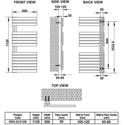 Reina Scalo Designer Heated Towel Rail 1120mm H X 500mm W Polished Stainless Steel