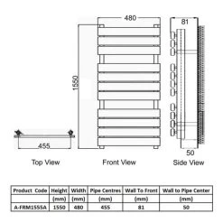 Reina Fermo Flat Panel Heated Towel Rail 1550mm H X 480mm W Anthracite