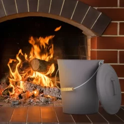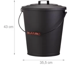 Relaxdays Ash Bucket With Lid, Steel 24 L Charcoal Bin, With Wooden Handle, Black