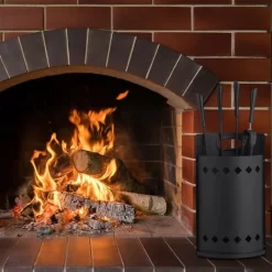 Relaxdays 4-Piece Fireplace Companion Tool Set Shovel, Brush , Poker & Holder, Modern Design, Black