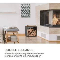 Blumfeldt Firebowl Kindlewood S, Black Wood Storage, Bench, 57x56x36cm, Bamboo, Zinc