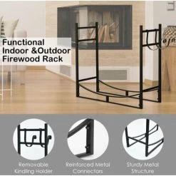 33inch Firewood Rack W/ Removable Kindling Holder Steel Fireplace Wood Storage