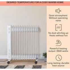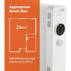 Igenix Oil Filled Radiator, 2.5kW/2500W Overheat Protection, White – IG2625