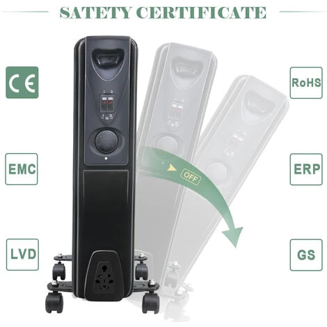 – 2500W oil filled radiator with 11 fins, heat up quickly to distribute warmth across the room.