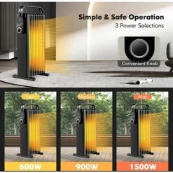 This 1500W oil filled heater will be a perfect companion for you throughout cold weathers. With 3-level heat settings, this space heater will satisfy your different demands with high heating efficiency. The heater is designed with multiple humanized details. You can dry towels or clothes on the foldable rack. The four built-in casters make the space heater easy to move to any places you want. And the slim size of the heater won’t take up too much space, which is ideal for small apartments. More importantly, the heater is safe to use with overheat and tip-over protection. With this oil filled heater, you won’t feel cold any more in winter days!