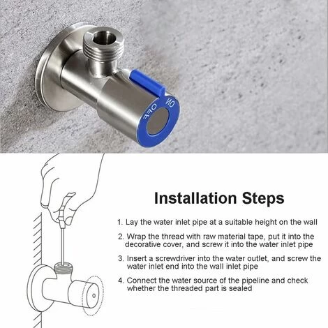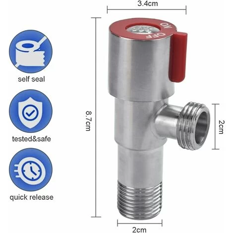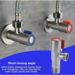 Short Closing Angle: Short quick-release buckles make it easier to open and close. In an emergency, they can shut off the water supply quickly and reliably! The angle valve is 8.75 cm long and fits a standard 1/2 inch outlet. Both models have a 1/2 wall connection.