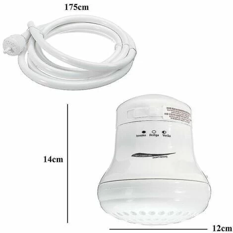 Features: 3 TEMPERATURE CONTROL. Three water temperature controls, low temperature, medium temperature and high temperature. The water flow is large and the water is uniform. APPLICABLE FOR. Suitable for bathing in hot and cold water. Perfect for hot water rinses by the pool, also for cabins where you don’t really need a heater and all the extra plumbing. THE BEST ELECTRIC SHOWER HEATER. The water flow is large and the water is uniform. SAFE QUALITY. Made of high quality PP, non-toxic and eco-friendly. Equipped with two handles, secure use. Specifications: Color: White; Voltage: 220V Power: 5400W; Working pressure: 10A 400kpa; Weight: 500g; Size: Shower head: 12x12x14cm/ Hose: 175cm; Temperature: low temperature / high temperature / medium temperature. Package Included: 1 x Electric Shower Head; 1 x plastic pipe; 1 bracket;