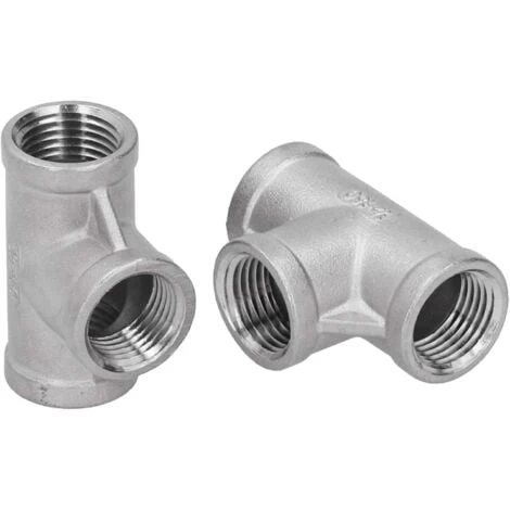 1/2 NPT tee with three openings for connecting and branching three sections of pipeline.