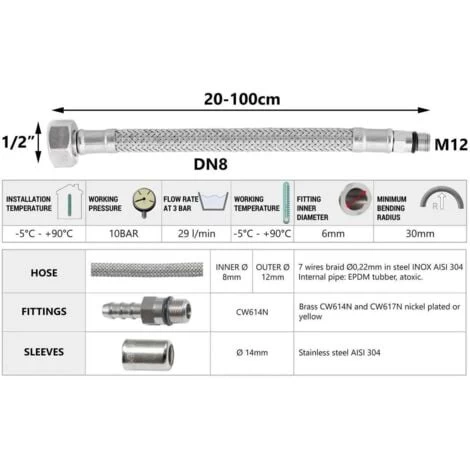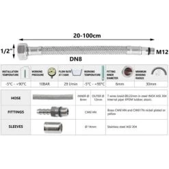 – Internal non-toxic EPDM rubber braided of stainless steel.