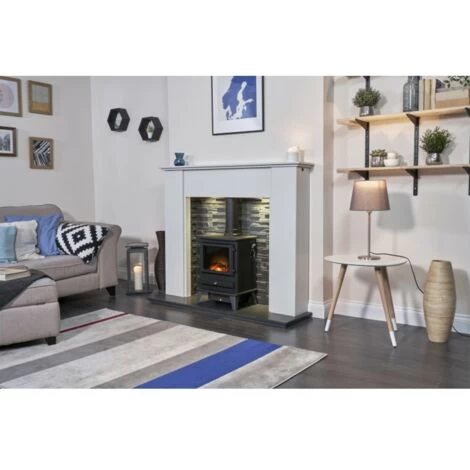 The Adam Hudson electric stove is a fire to be desired. Featuring an excellent realistic LED flame effect and log fuel bed this fire has a traditional feel to it. The fire is a perfect companion to your wooden, marble or stone fireplace and can be complimented with the Adam straight or angled stove pipe (to be purchased separately).