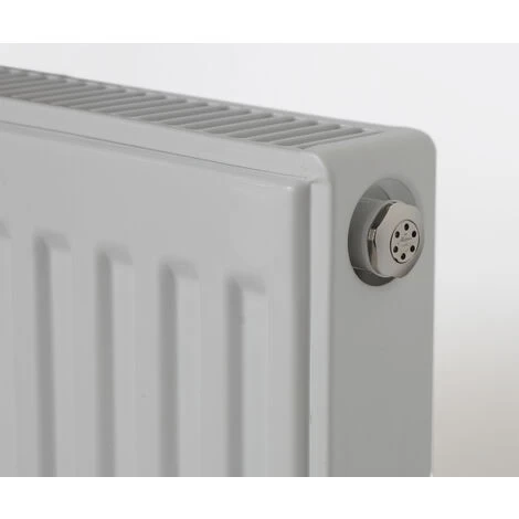 For installed “problem” radiators: Often systems have a problem radiator in which air collects; most often the towel rail. The symptoms are a cold top bar and the noise of bubbling water. The correct Aladdin product (check the thread size of the radiator) can be installed without draining the system. Just shut off the two water valves, release the pressure in the radiator via the existing manual vent, and use a spanner to take out either the manual vent or the blanking plug before installing the Aladdin valve. Open the water valves and the radiator will then bleed itself.