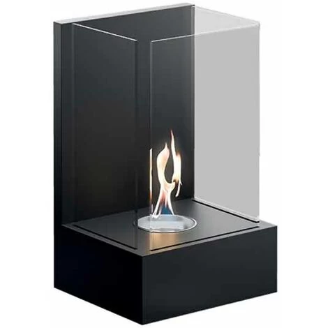 The Altea Bioethanol Lantern has a stainless steel and glass structure. The lantern sits on a painted black base with a black rear panel. It can be freestanding or wall mounted.