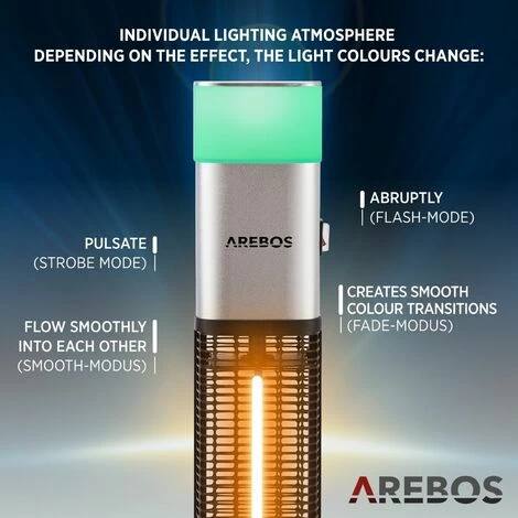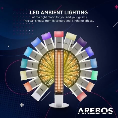 With the AREBOS LED radiant heater you can choose between 16 different colors and find the right color for every occasion and mood.