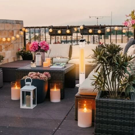 [Suitable for indoor and outdoor use] In order to enable safe use, our patio heater has been developed according to protection class IP65 and is therefore protected against dust, spray and water jets. Accordingly, you can use our product indoors as well as outdoors.