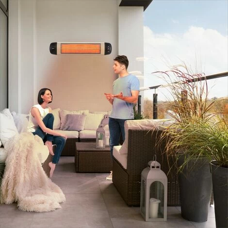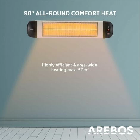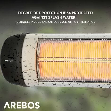 With a heating power of 2500 W this heater is very powerful. The infrared technology makes this radiant heater from AREBOS extremely efficient: Heat does not radiate into the ambient air but towards people in the nearby surrounding.