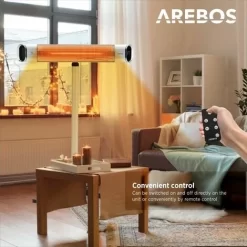 When the temperatures start to drop, the AREBOS radiant heater generates infrared heat for individual heating of patios, garages, and outdoor areas. Perfect for restaurants, events, or private backyards. This flexible heater features a height-adjustable tripod for convenient installation and deinstallation and a remote control for convenient operation.