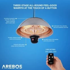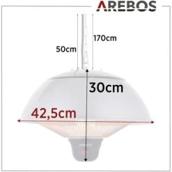 [Reliable heat] With this infrared ceiling radiator from AREBOS you can enjoy convivial gatherings or cozy evenings outdoors at any time of the year. Especially on colder days this infrared radiator works as a powerful heat source. Extend the outdoor season with your friends & family!