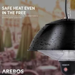 [Reliable heat] With this infrared ceiling radiator from AREBOS you can enjoy convivial gatherings or cozy evenings outdoors at any time of the year. Especially on colder days this infrared radiator works as a powerful heat source. Extend the outdoor season with your friends & family!