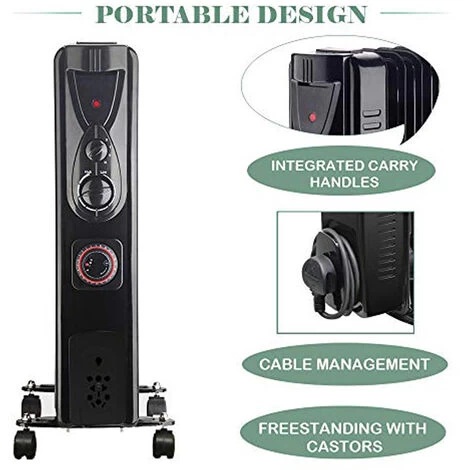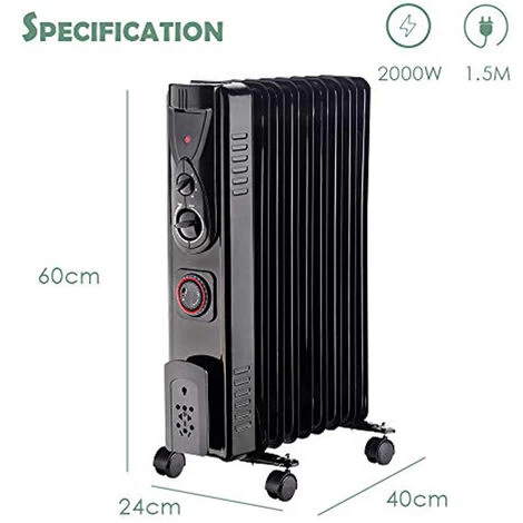 – 2000W oil filled radiator with 9 fins, great for the cold winter days.