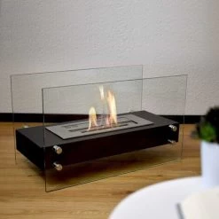 Product features:Bio ethanol fireplace in brushed stainless steel – Material: Stainless steel / glass – L xwxh: 60 x 30 x 35 cm – Weight: 15 kg. | < h4 class=a-spacing-mini>Burner data: 1.5L non-woven ceramic burner – 1.5L fuel tank 7 h – Heating power: 2.2 kW/h. | Security :Safety burner with leak protection, non-woven ceramic burner, certified protective glass TÜV. |