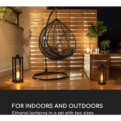 For indoors and outdoors: Ethanol lanterns in a set with two sizes