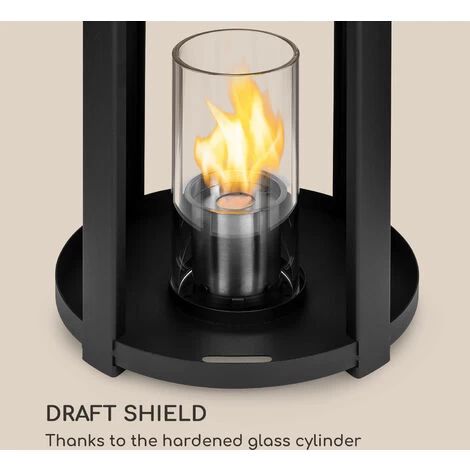 The blumfeldt Fiamme Cilindro ethanol lantern set enhances your living or outdoor area with two beautiful fireplaces. The two sizes harmonise perfectly together or can even find a suitable place in your home on their own. They are fuelled with bio-ethanol, which is obtained from renewable raw materials and burns residue-free and odourless. The flame blazes in the centre of the frame, protected from the wind by a tempered glass cylinder. The stainless steel burner holds 0.3 litres of liquid and guarantees a continuous display of flames for several hours. To extinguish the fire safely, the Fiamme Cilindro comes with a practical extinguishing tool.