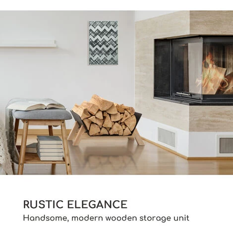 Who doesn’t like sitting by a lively crackling, warming fire? With the blumfeldt Firebowl Langdon Wood Black you can relax in comfort: The logs for stoking the fire are immediately at hand. The wood storage not only offers you a space-saving storage option, it is also a modern eye-catcher with its appealing, natural design. The black coloured iron gives the wood storage a luxurious glow, which is wonderfully contrasted by the natural wood of the frame with legs. For the rustic but modern appearance is only completed by the wooden legs. A harmonious picture results from the materials as soon as you fill your new wood storage with logs.