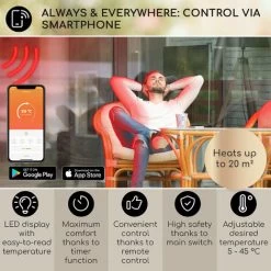 HOME HEATING JUST GOT SMARTER : Control it from afar with our remote or smart app. The app lets you set the desired temperature from your phone no matter where you are. Connect via WiFi and program this infrared heater to turn on at specific times.