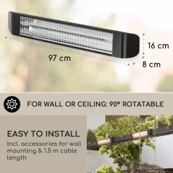 EVERYTHING NEEDED FOR A QUICK SETUP: Comes with everything you need to assemble it fast. In addition, the lightweight design means this heater for gardens and terraces easily mounts to walls or ceilings to quickly warm up seating areas.