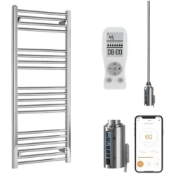 Prefilled with glycol for frost and corrosion protection and supplied with the R4 splash proof (IPX4) thermostatic electric element with timer and remote. Features include a 24 hour 7 day timer and open window recognition, making it LOT 20 / ErP Compliant. This heated towel rail is ideal for room spaces such as kitchen, bathroom, shower room, cloakroom.