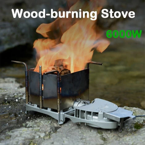 With a special blowing system, the firepower can be adjustable and the combustion efficiency doubles. Any dry biological material that is combustible can be used as a fuel source. The air outlet plate on the frame of the stove is designed for even distribution of firepower. It is powered by 2 AA batteries or mobile power (both are not included) and has two modes of firepower. Rotating brackets can be adjustable to fit all pots. Strong flame: With a blower system and adequate oxygen supply, the stove can boil 1L of water in one minute .