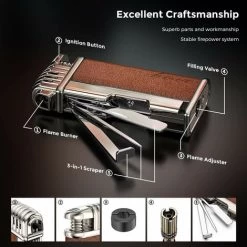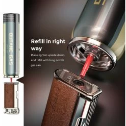 Refillable: The lighter can be refilled. with any butane available on the market, practical and economical (sold without gas).