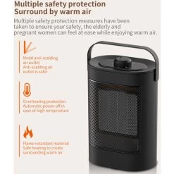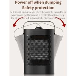 Automatic oscillation, offers a larger heating angle. 3 modes: Cool mode: Fan function, the ceramic fan heater has a safety system, a tilt sensor that automatically stops if it moves to an unusual position or falls