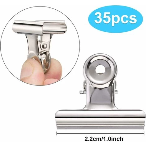 3.It is used; to seal large food bags for dogs and cats, coffee bags to avoid excessive contact between food and air, it will help you to fix the clothes, the bath towel, to the arrange small items in the kitchen, hanging small pottings,it can hold heavy objects.Specifications: Material: Stainless steel Size: 22mm Color: Silver Quantity: 35 pcs clipPackage included: 35x small clip medium [Satisfaction Guarantee]: We provide fast delivery, best quality products; and the best customer service for every customer. If you have any questions about our products, do not hesitate to contact us. contact us, we will get back to you within 24 hours. 100%.