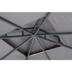 Our Paradiso canopy measures 398cm in length, 298cm in width and 270cm in height. So, it provides great amount space to shaded and shelter your outdoor lounge set or dining set. The parasol has been crafted using aluminium, polyester fabrics, and steel, this ensures the canopy is of high-quality and resilient. Also, this makes sure the canopy’s colour won’t fade due to the sun’s rays.