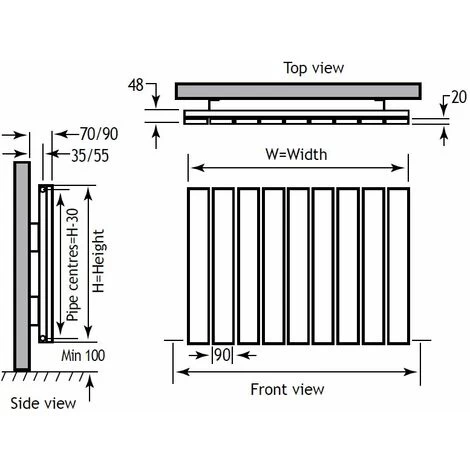 - Radiator Wall To Pipe Centres: 35-55mm