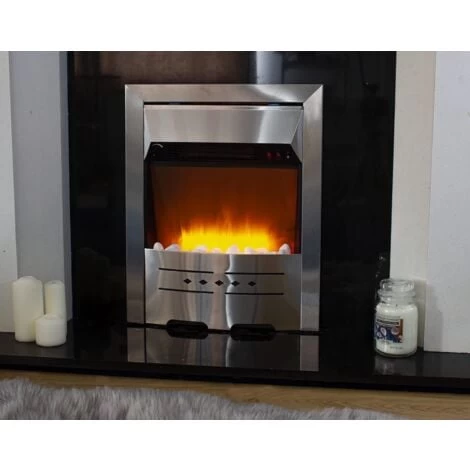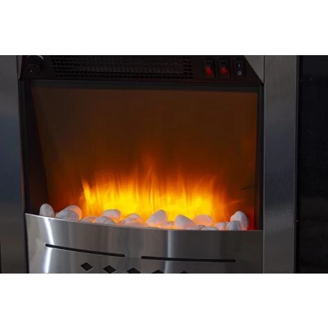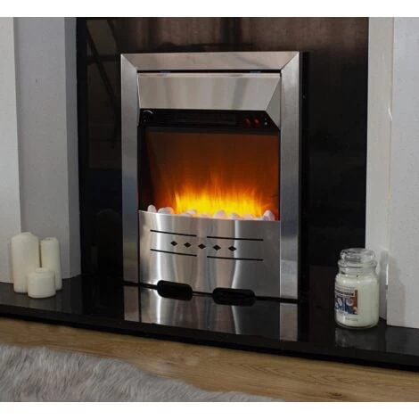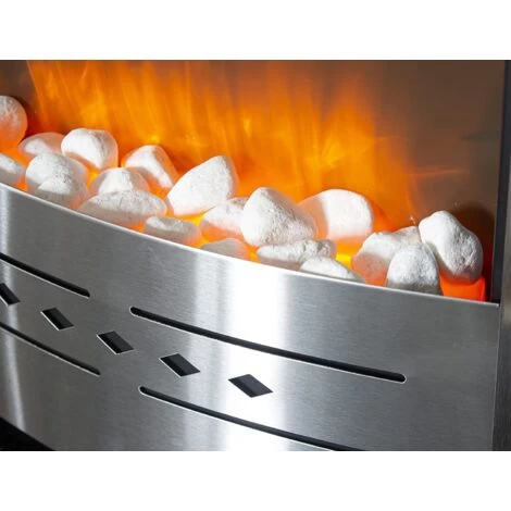 ELECTRIC FIREPLACE – Create a striking modern focal point in your living room with our stunning sleek steel fire. With stylish, contemporary design from every angle, this flame effect fire will look great and create warmth wherever you choose to display it. With easy to use features and a high performing heat and flame effect, this electric fireplace looks stunning within any style of home. FLAME EFFECT – With its flame effect, the gentle light provided deceptively imitates real flames and instantly spreads a cosy, romantic atmosphere. The sleek silver finish combined with the pebble bed creates the perfect 21st century fireplace. This fire is also easy to install, simply mount on a wall and enjoy! EYE-CATCHING – Easy to place and display, this fireplace will create an instant focal point in any room, providing heat and a stunning traditional flame effect. The perfect way to create a cosy warm atmosphere for your guests this Winter and all year round! FEATURES – This fireplace comes jam packed with fantastic features: Flame effect, adjustable flame brightness, Thermostat, safety thermal cut-off device. Warming heat with easy adjustment and the flame effect that can be used independently of the heat. SPECIFICATIONS – Free-standing style fire, with steel pebble flame effect. Flame effect can be used independently of heat. CE/RoHS . Product size: H59 x L48 x W16cm. Low heat setting 750W, High heat setting 1500W. Adjustable flame brightness. Thermostat. 1000/2000W, safety thermal cut-off device. Full instructions and safety advice included. (Surrounding not included – silver insert fireplace only).