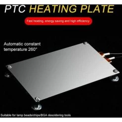 PTC Heating Plate: The structure of the PTC heating plate and aluminum heat sink will reach approximately 250 degrees Celsius (17710 degrees Celsius) in 30 seconds without the need for a thermostat.